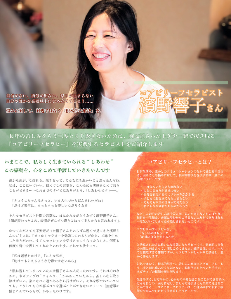 私の命はコア・ビリーフ セラピーに救われ、私に計り知れないほどの大きな変化をもたらしてくれました。